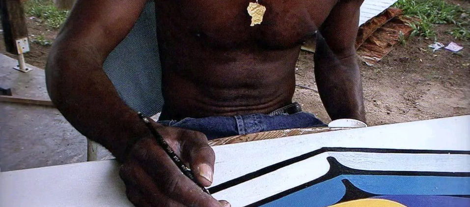 L’artiste peintre guyanais Francky Amété est spécialisé dans l’art «Tembé»; Art graphique et visuel hérité des » Noirs marrons» des plateaux de Guyane. Comme eux, Franky Amete est le gardien de la culture africaine présente en Amérique du Sud. L’artiste travaille ses oeuvres à l’aide de la règle et du compas pour créer un art géométrique très riche en couleurs. Il est le premier à avoir utilisé des sables de couleurs différentes comme éléments artistiques. Ses tableaux peuvent mesurer jusqu’à plusieurs mètres de long. Le Tembé épouse différents supports : le Kopo (triangle faîtier de la maison), la tête de pirogue, la pagaie et la porte ou la façade de la maison.Ce n’est que récemment que le tableau peint sur bois ou sur toile est apparu. Le Tembé n’est alors plus ornement mais art à part entière.